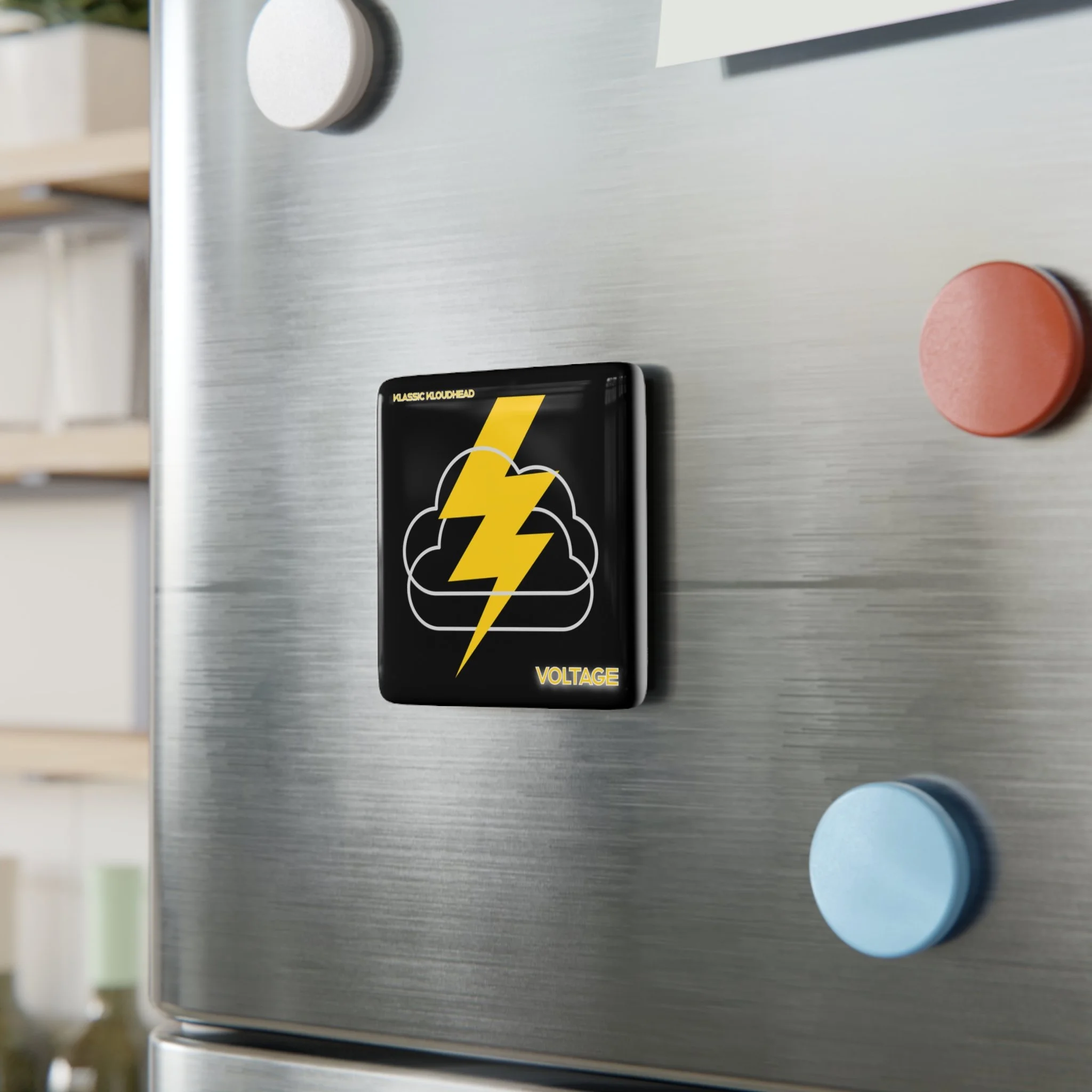 .: 2" square "Winter Weather Warning" album cover, with a magnet mounted to the backside